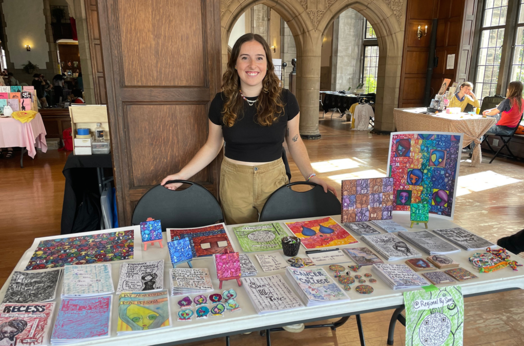 I use oil paint and fine brushes to create detailed alien figures with whimsical patterning that reflect upon my personal life, mental health, and queer identity. I tend to overanalyze anything and everything, and my art is a continual exploration of complex, alienating emotions. I’m always creating and strive to make my art personable, relatable, and accessible.